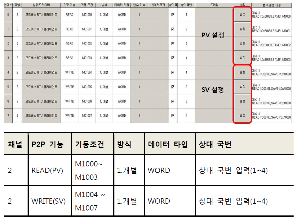 그러니 기동조건에서 1번 국번 수신 후 2번 ....4번에서 다시 1번으로 기동조건을 만들어 사용하여야 합니다.