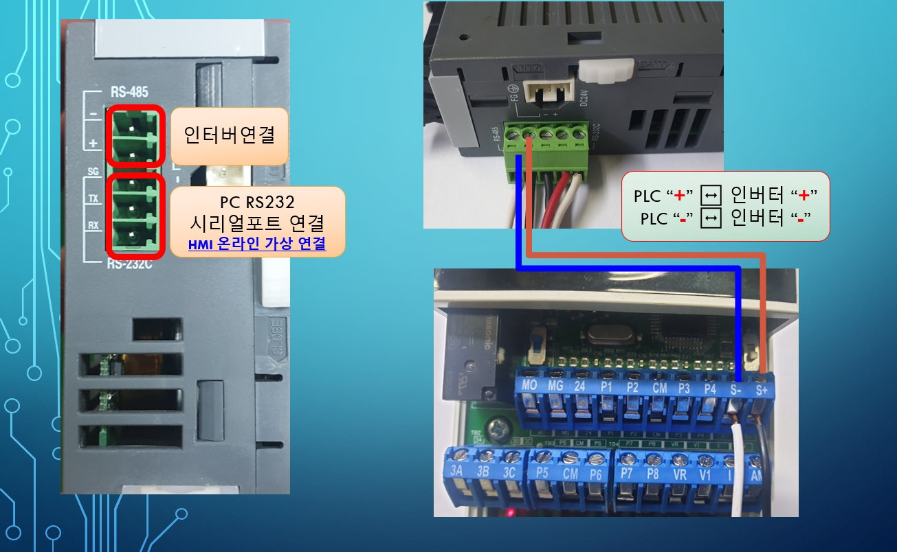 i5GA 인버터와 XGB PLC간 RS485 통신 배선 :