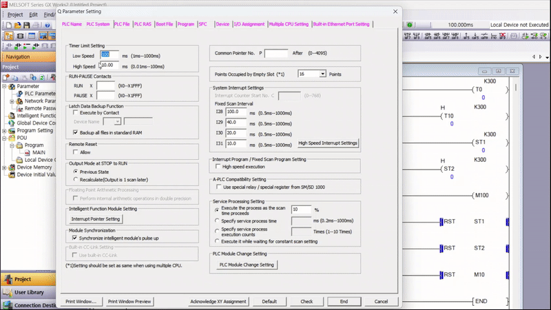 적산 저속/고속 타이머 Parameter - Device Points Zero로 할당되어 ST 디바이스를 사용할 수 없다.