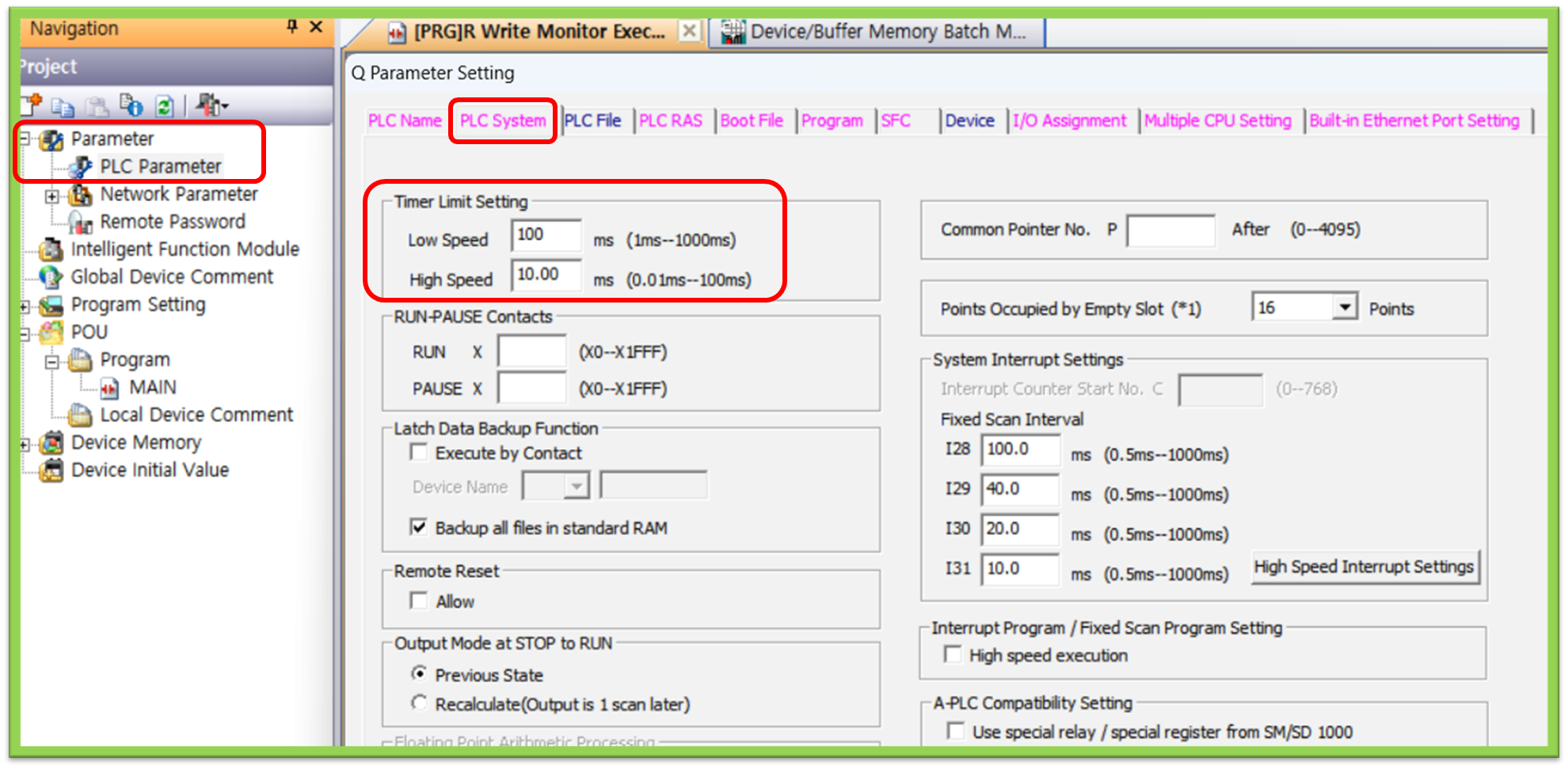 위 4가지의 타이머를 사용하기 위해서는 먼저 PLC Parameter 수정이 필요하다.